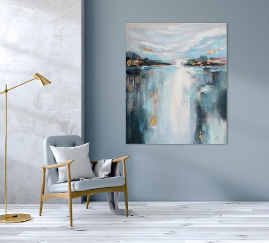 Handgemaltes Acrylgemälde auf Leinwand „Spiegelnder Horizont“