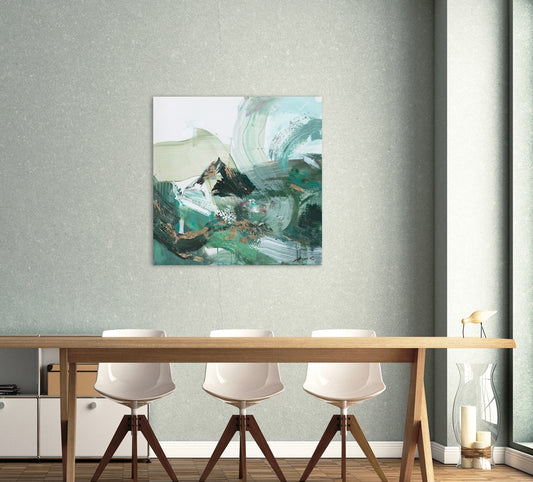 Handgemaltes Giclée-/Acrylgemälde auf Leinwand „Schwungvolle Variationen in Grün“
