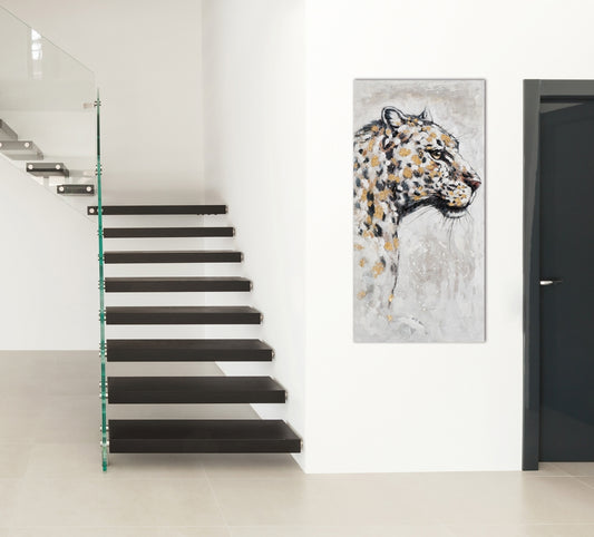 Handgemaltes Acrylgemälde auf Leinwand „Leopard mit gold“