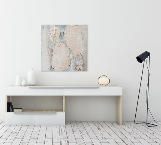 Abstraktes, handgemaltes Acrylgemälde auf Leinwand „Facetten in Hellblau“