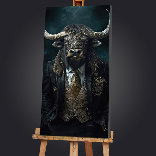 Digitaldruck-Wandbild auf Sicherheitsglas „Gentleman Bull“ | Rahmenloses Wandbild