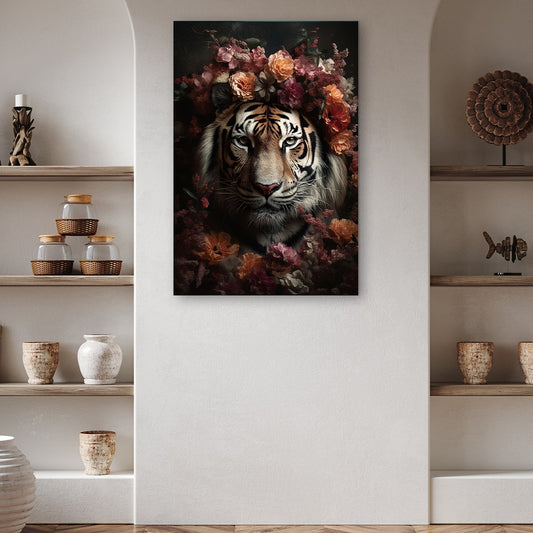 Digitaldruck-Wandbild auf Sicherheitsglas „Tiger flowers“ | Rahmenloses Wandbild