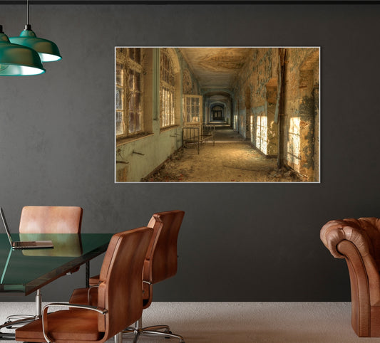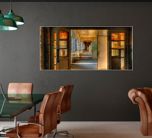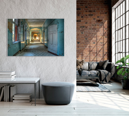 Ultra hochauflösender Digitaldruck auf hochwertiger Trägerplatte „Lost Place Flur“ | seidenmatt