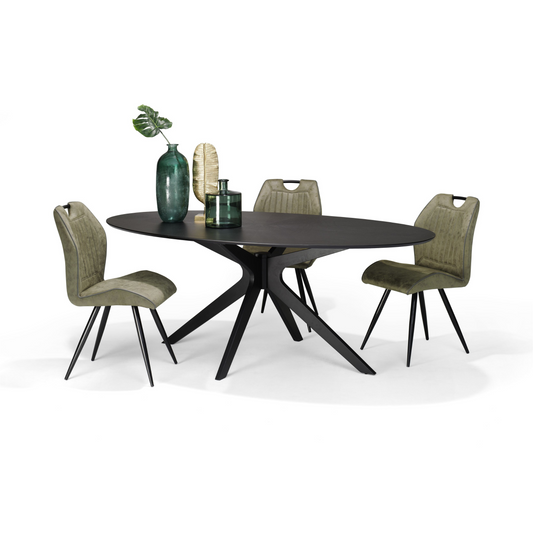 Moderner Esstisch aus funierter Eiche 200x110x77 cm in schwarz | Esszimmertisch oval aus Eiche