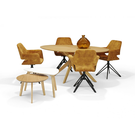 Moderner Esstisch aus funierter Eiche 200x110x77 cm in Natur | Esszimmertisch oval aus Eiche