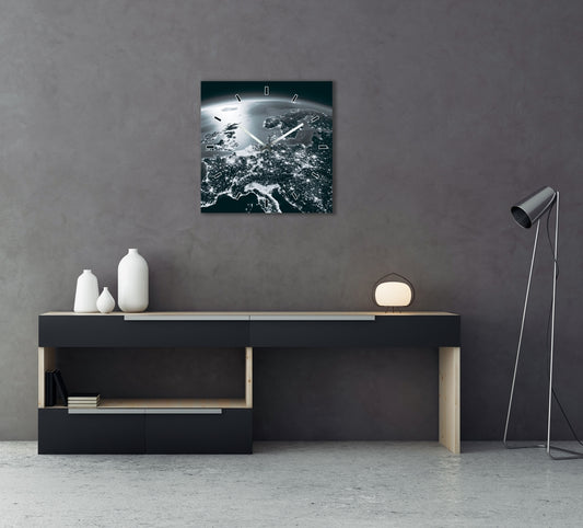 Künstlerische Wanduhr | Digitaldruck auf Sicherheitsglas | Die Erde aus dem All
