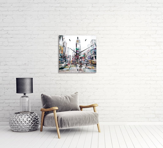 Künstlerische Wanduhr | Digitaldruck auf Sicherheitsglas | Times Square