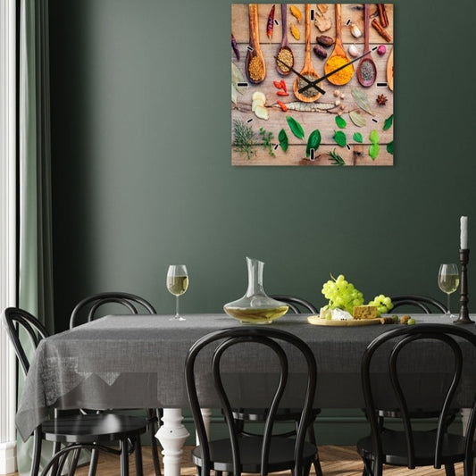 Künstlerische Wanduhr | Digitaldruck auf Sicherheitsglas | Rustikale Gewürze