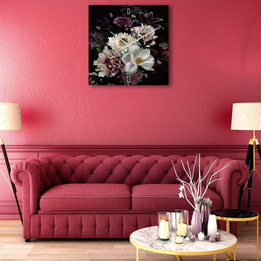 Künstlerische Wanduhr | Digitaldruck auf Sicherheitsglas | Hübsches Blumenbouquet