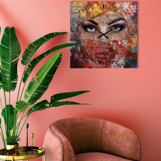 Künstlerische Wanduhr | Digitaldruck auf Sicherheitsglas | Orientalische Schönheit