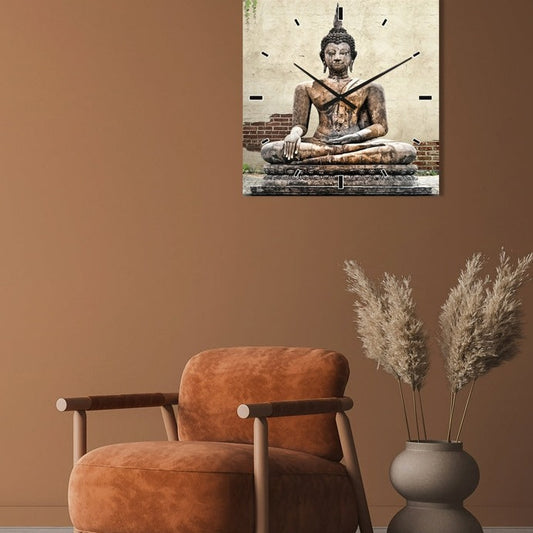 Künstlerische Wanduhr | Digitaldruck auf Sicherheitsglas | Buddha überwacht die Zeit