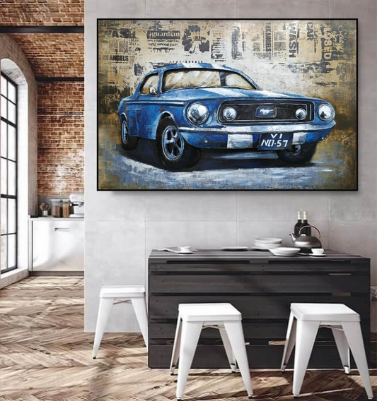Handgefertigtes 3D-Metall-Gemälde „Blauer Mustang“ | Wandbild aus Metall | 3D Gemälde aus Metall-Kunst