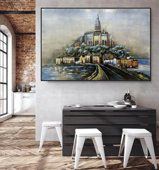Handgefertigtes 3D-Metall-Gemälde „Mont-Saint-Michel“ | Wandbild aus Metall | 3D Gemälde aus Metall-Kunst