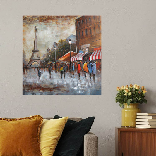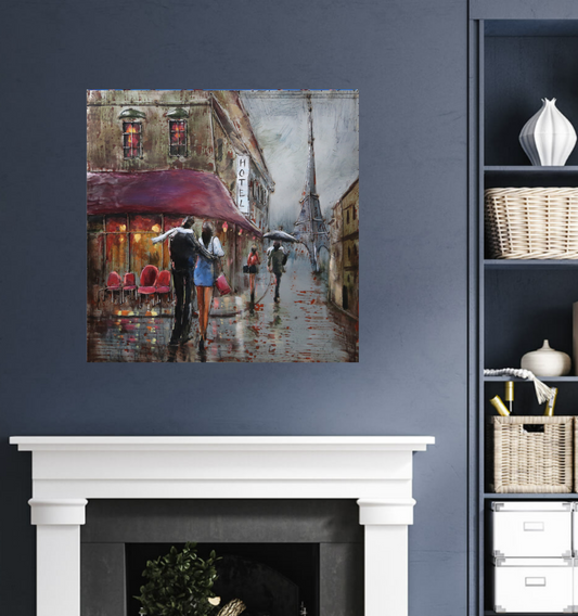 Handgefertigtes 3D-Metall-Gemälde „Regen in Paris“ | Wandbild aus Metall | 3D Gemälde aus Metall-Kunst