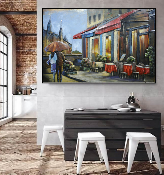 Handgefertigtes 3D-Metall-Gemälde „Romantisches Restaurant“ | Wandbild aus Metall | 3D Gemälde aus Metall-Kunst