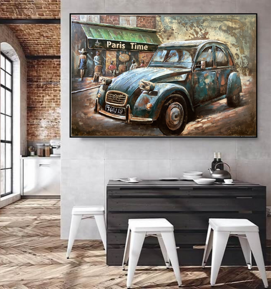 Handgefertigtes 3D-Metall-Gemälde „Paris Time“ | Wandbild aus Metall | 3D Gemälde aus Metall-Kunst