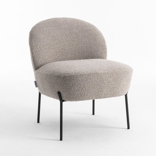 Kuscheliger Loungestuhl zum Wohlfühlen mit Teddy-Stoff in Taupe | Wohnzimmerstuhl Boucléstoff - Modern