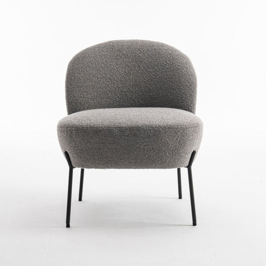 Gemütlicher Loungestuhl mit Bouclé-Stoff in Grau | Wohnzimmerstuhl Teddystoff - Modern