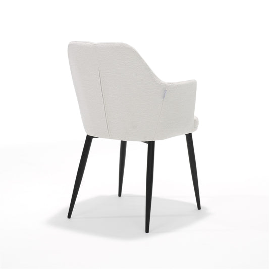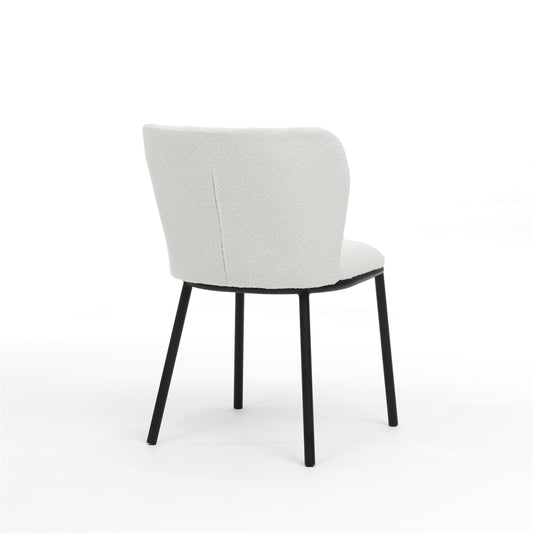 Moderner Esszimmerstuhl mit Teddyfell in Weiß & Metallfüßen | Bouclé-Stoff und bequeme Sitzfläche