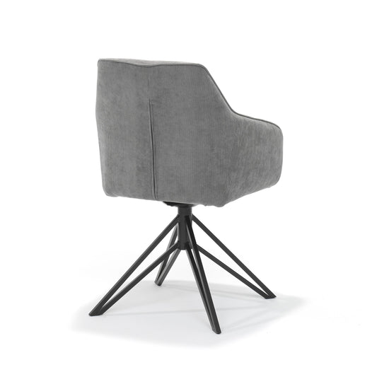 Drehbarer Esszimmerstuhl auf Metalfüßen und Armlehnen in Grau