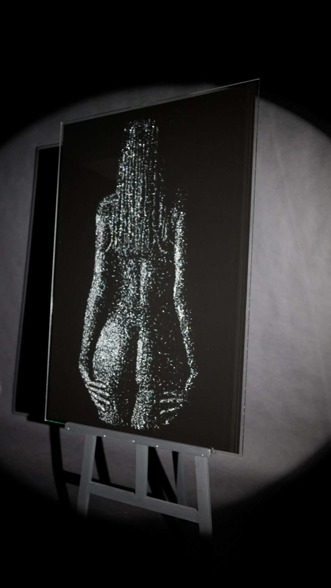Luxeriöses Wandbild aus Glas „Seduction” | Modernes Glasbruchgemälde mit Rahmen | Wandkunst aus Glas mit Rissen