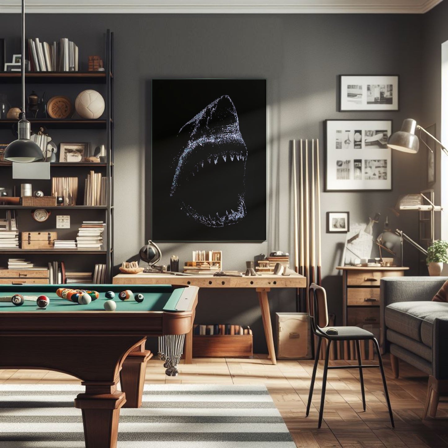 Luxeriöses Wandbild aus Glas „Weißer Hai” | Modernes Glasbruchgemälde mit Rahmen | Wandkunst aus Glas mit Rissen | Glass Crack Wallart